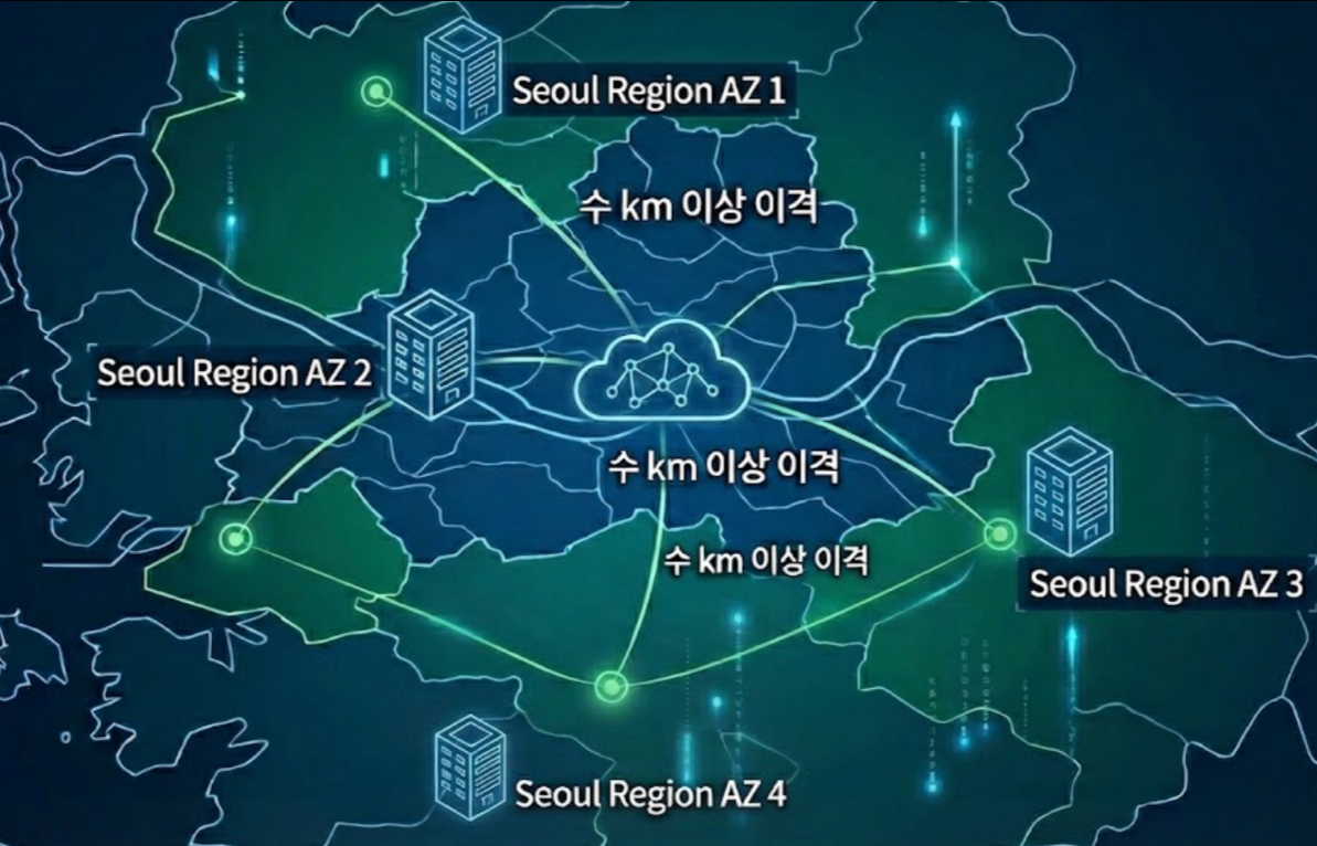 이 말을다시 풀어서 이야기 해본다면, 데이터 센터 하나가 화재로 인해 운영이 불가능해지더라도, 다른 곳의 데이터 센터가 존재하므로 이용자는 아무런 불편함 없이 서비스를 이용할 수 있다는 뜻입니다.