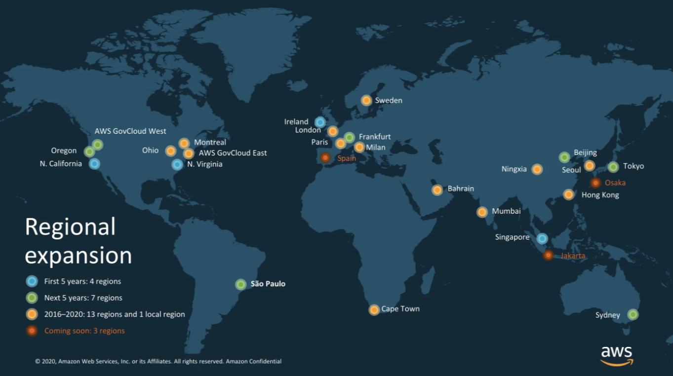 AWS는 전 세게에 분산된 데이터센터를 가지고 있고, 우리는 그 중 원하는 위치를 선택해서 사용하게 됩니다.