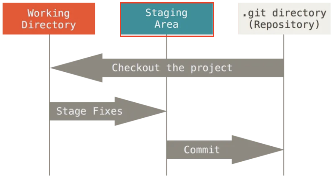 working Directory : 실제로 소스코드를 작성하고 편집하는 영역으로, 아직 Git으로 변경 사항을 기록하기 전 단계