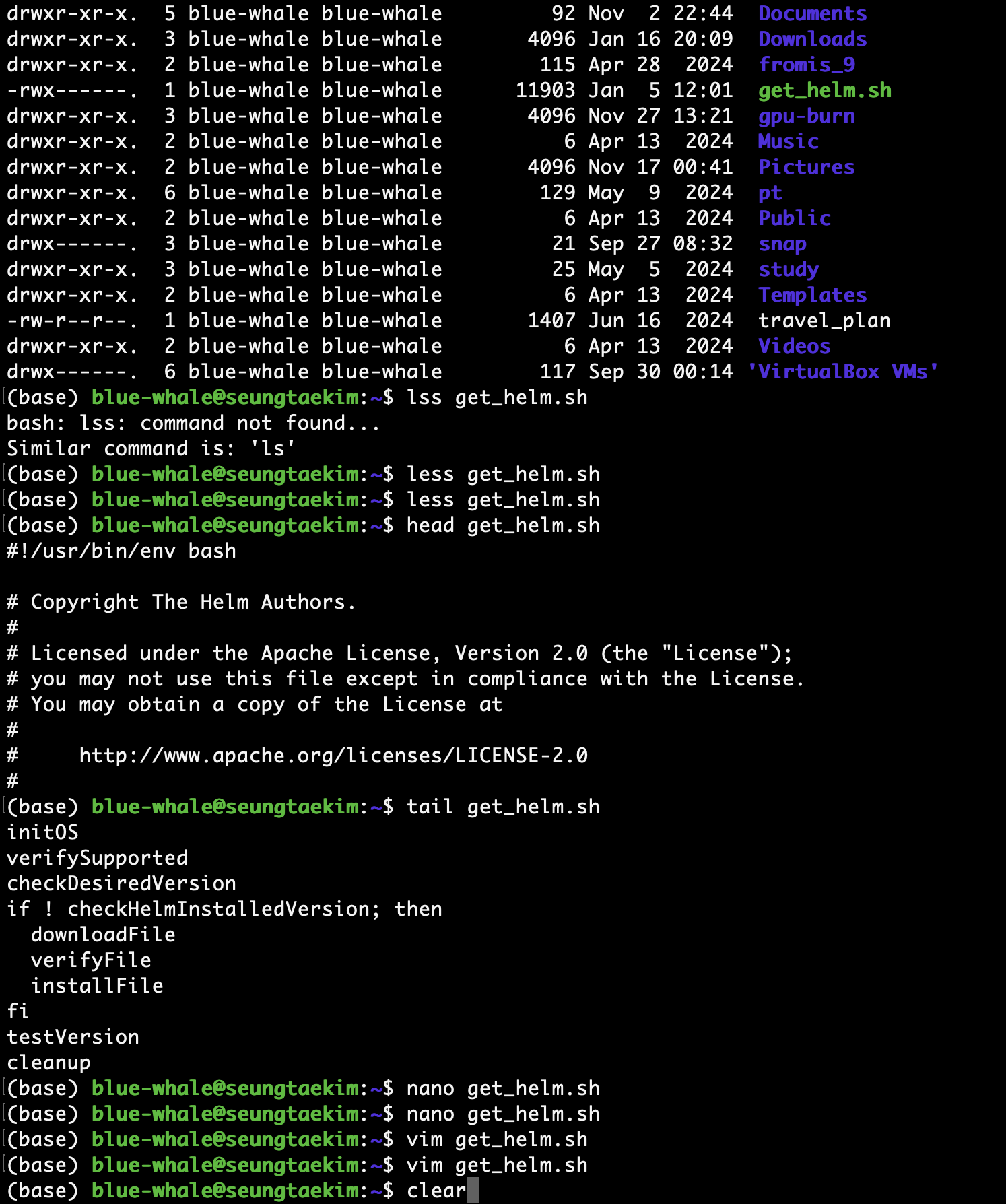 그 때 터미널 입력 화면을 한번 정리할때 사용하는 게 clear라는 명령어 입니다.